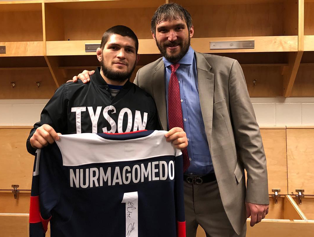 После игры Хабиб Нурмагомедов встретился с известным российским нападающим, выступающим за «Вашингтон», Александром Овечкиным.