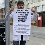 Широко уже известный в народе доктор Салим Халитов во вторники провел серию одиночных пикетов в разных точках города. Выйдя на проспект Р. Гамзатова, бывший уже врач подошел к зданию родного ему до недавнего времени...